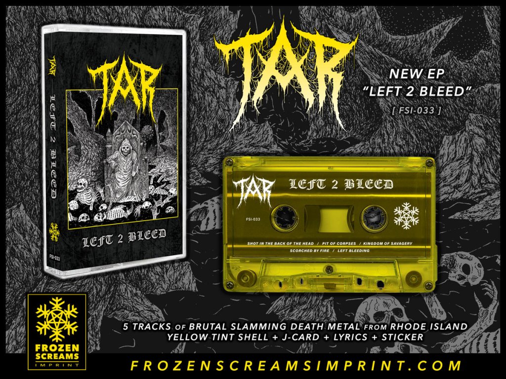 In the world of metal’s extremities, death metal reigns superior amongst most. From the classic releases of the 1980s such as Leprosy and Altars of Madness all the way into the classic releases of the 1990s such as Left Hand Path and Tomb of the Mutilated, death metal is still running rapid today in the underground scene being backed by tons of stellar bands, artists, labels, and fans that absolutely ride or die for this shit. One of those labels that has been on the underground forefront as of late is Frozen Screams Imprint with their stellar zine prints and stellar releases spanning from a stellar lineup of bands such as Wharflurch, Maul, Weeping, and many more. On February 4th of this year (2022), Frozen Screams let loose another act of savagery unto the world: TAR’s Left 2 Bleed. Forewarning, it crushes.
